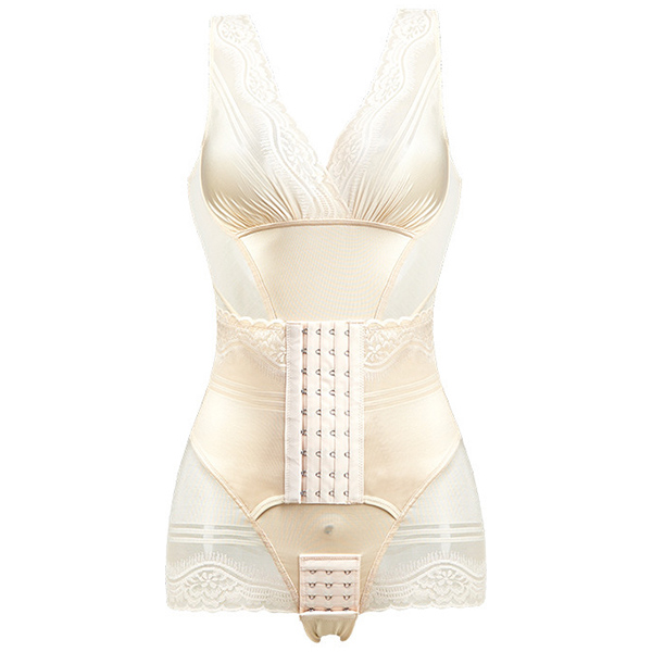 Fashion V-neck Cinch Waist Lace Spliced Bodyshaper Corset Bodysuit