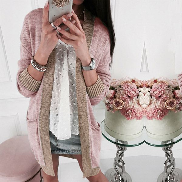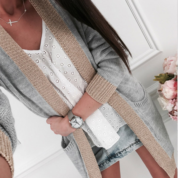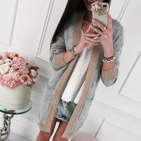 Sometimes you can just enhance your fashion charming by a simple piece such as this knit cardigan. Contrast color style,finished with long sleeve,front-pocket and a clean,loose silhouette,this piece can keep you feeling comfy and warm while it offers you different matching styles.