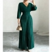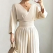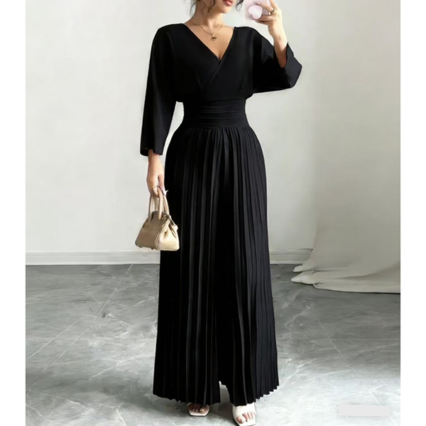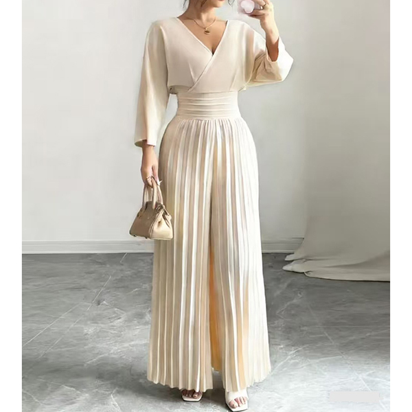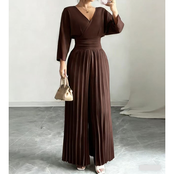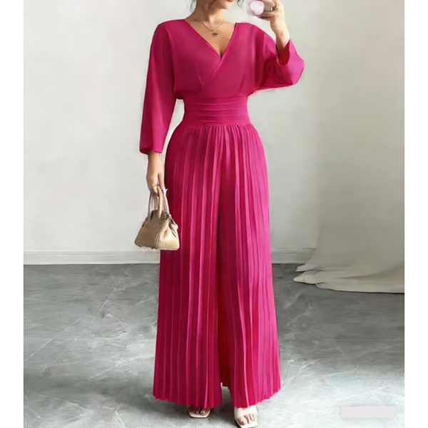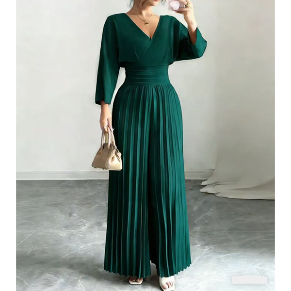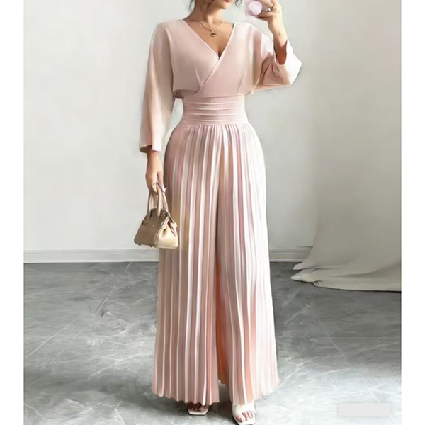 Fashion V-neck Elbow-sleeve High-rise Pleated Jumpsuit