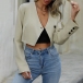 Fashion V-neck Front Button Long Sleeve Crop Blazer