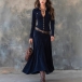 This dress features flattering V-neck styling with front button and customizable belt for contemporary elegant versatility. Wanna have one?