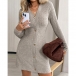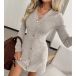Fashion V-neck Front Button Long Sleeve Ribbed Dress