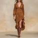 Fashion V-neck Front Button Long Sleeve Ruffle Irregular Hemline Dress