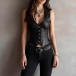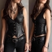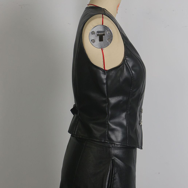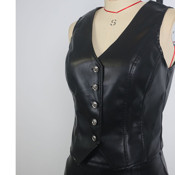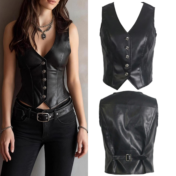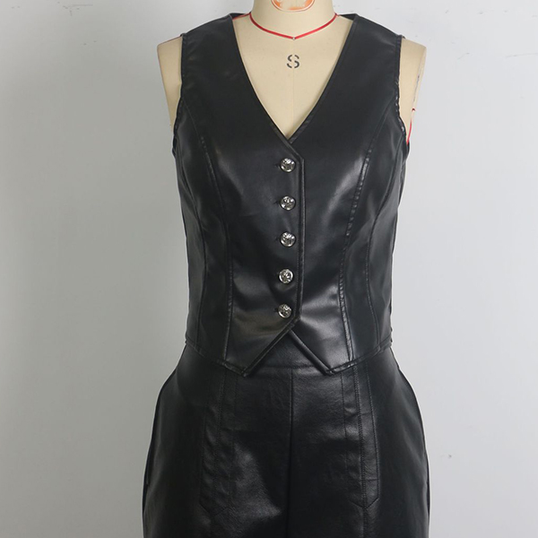 Fashion V-neck Front Button Sleeveless Artificial Leather PU Shirt