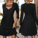 Fashion V-neck Front Cutout Long Sleeve Ribbed Mini Dress