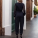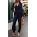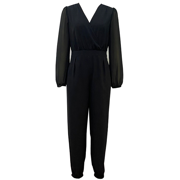 This captivating jumpsuit is a striking fusion of modern elegance style. It features a flattering V-neck, gauze spliced long sleeve and high-rise design, perfect for daily wear.