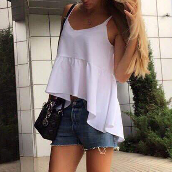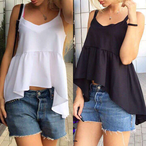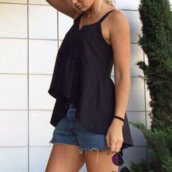 You can have a cool and comfortable day in this cami top. Solid color style,its v-neck and high-low hem design adds some