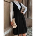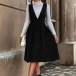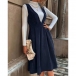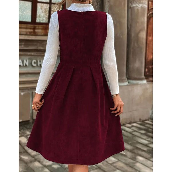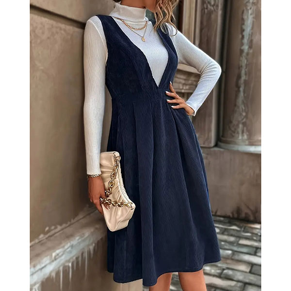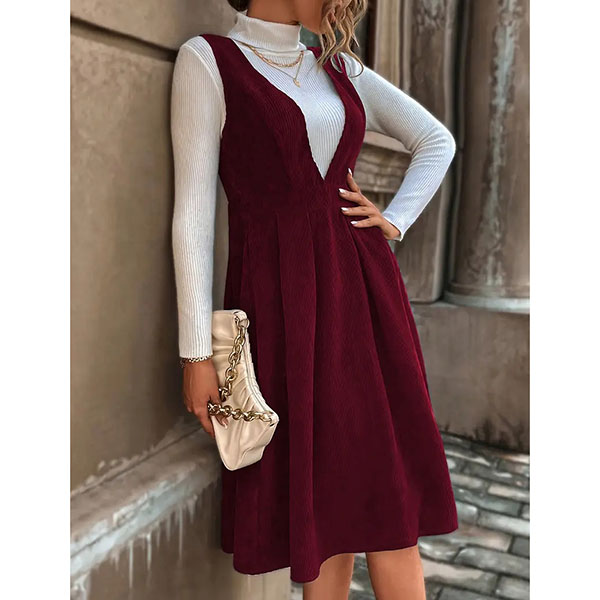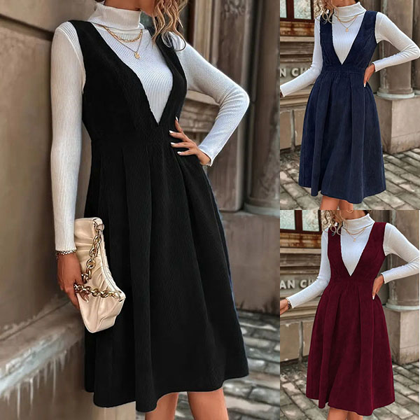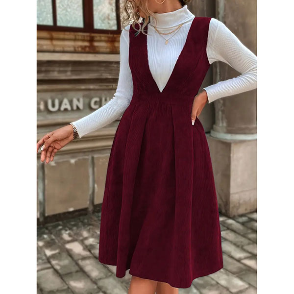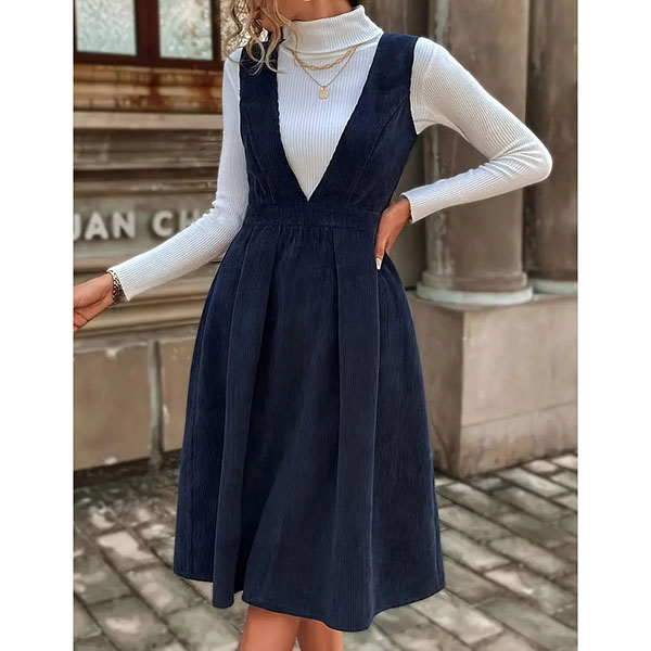 Fashion V-neck High-rise Corduroy Suspender Dress