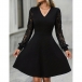 Fashion V-neck High-rise Lace Spliced Long Sleeve Dress