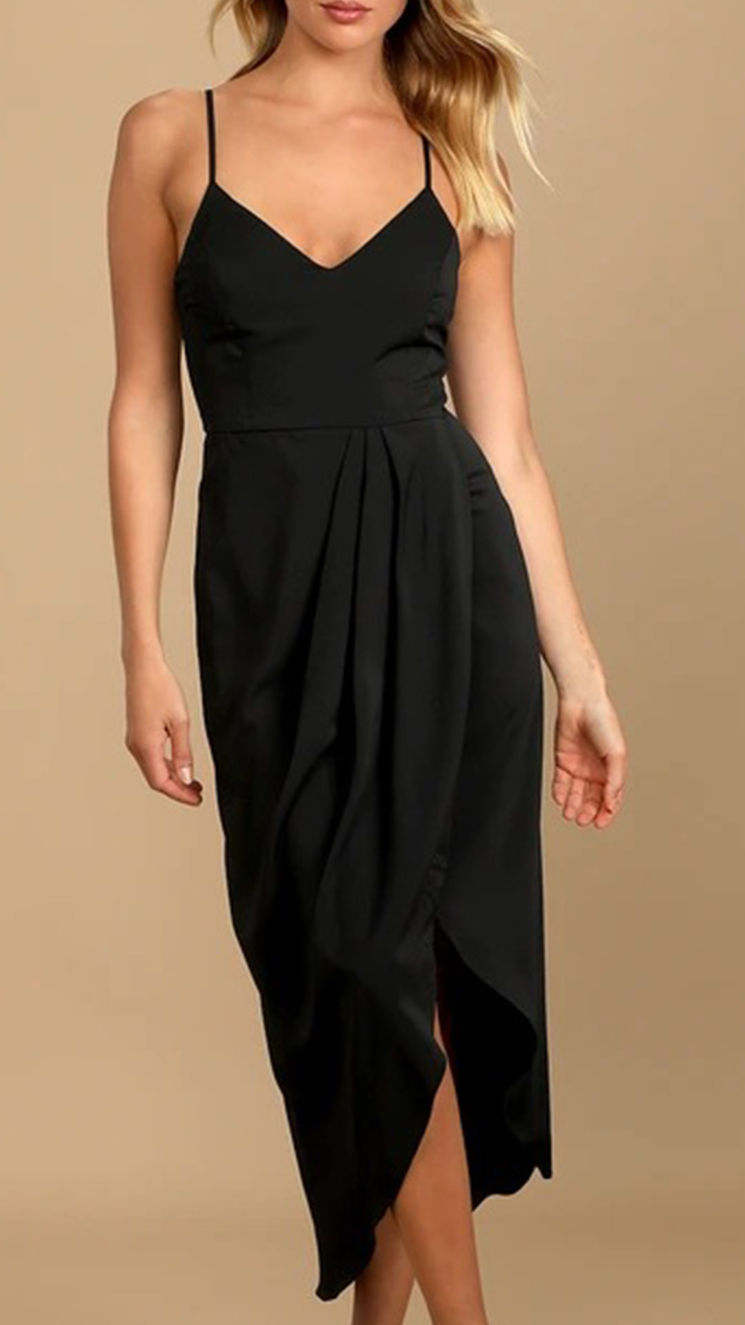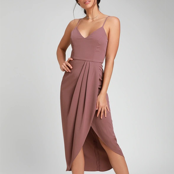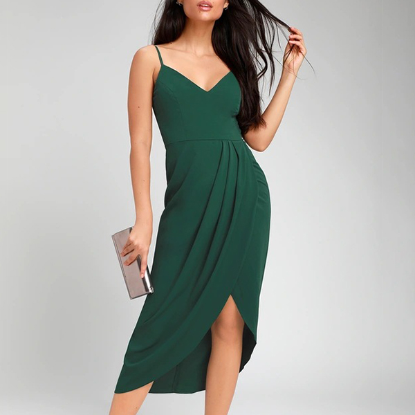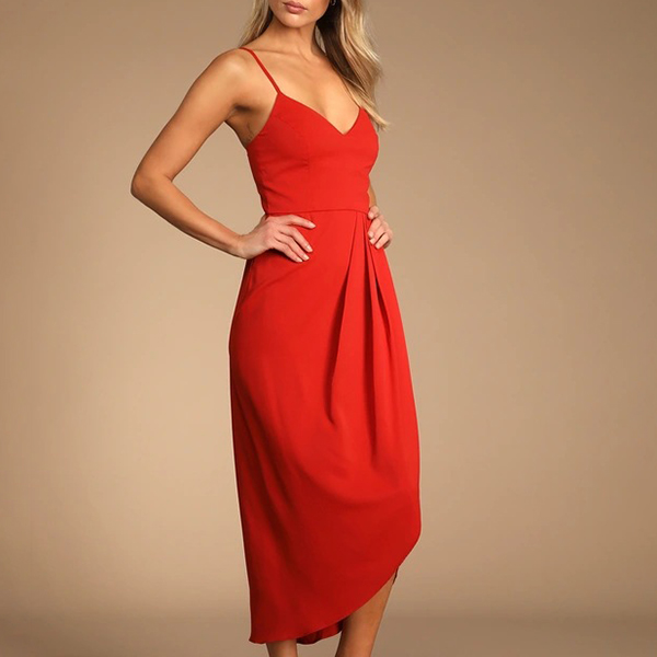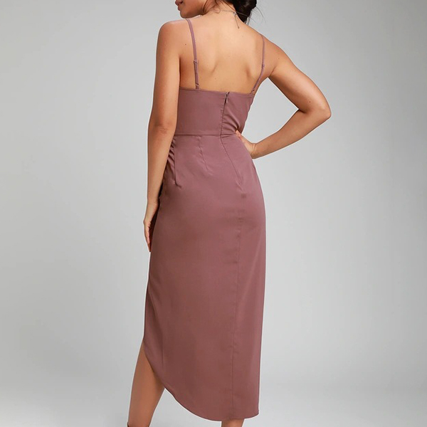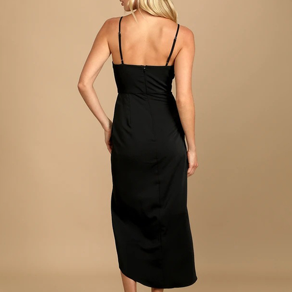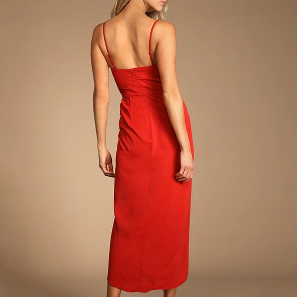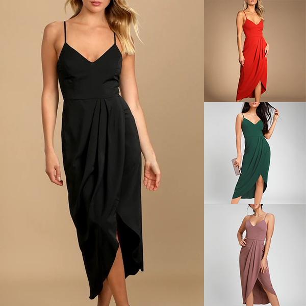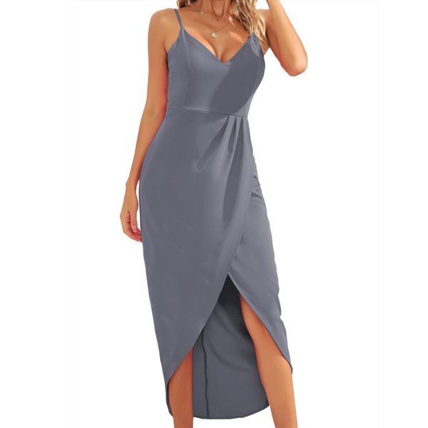 This chic cami dress features a V-neckline, a high-rise waistline, and a dramatic side slit, creating a stylish and eye-catching look that is perfect for a variety of occasions. Multi-colors avabile.