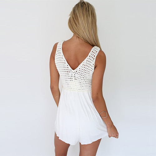 It features V back and v-neck design,sexy and chic. High waist and hollow out grid design
