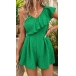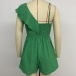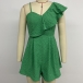 This fashion-forward romper features a V-neckline, irregular shoulder design, and textured fabric, creating a unique and stylish look. Pair it with heels and statement accessories for a chic and on-trend ensemble that will have you looking effortlessly stylish.