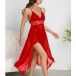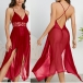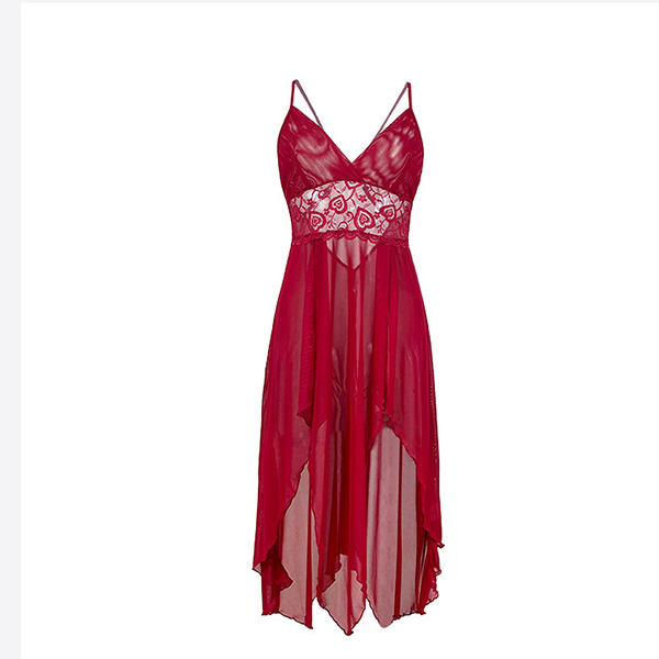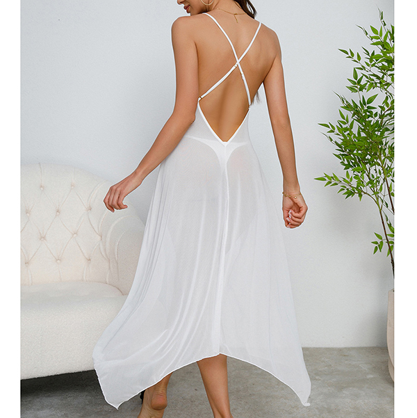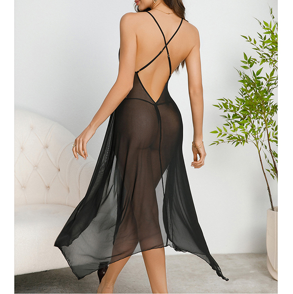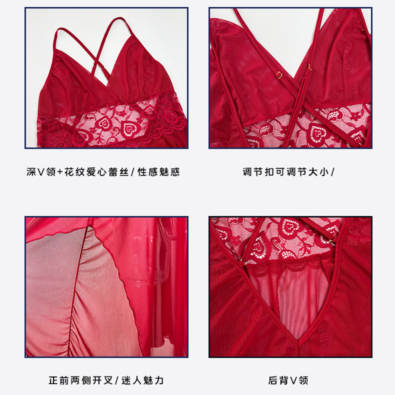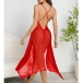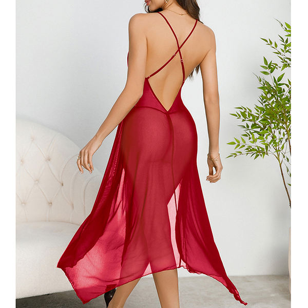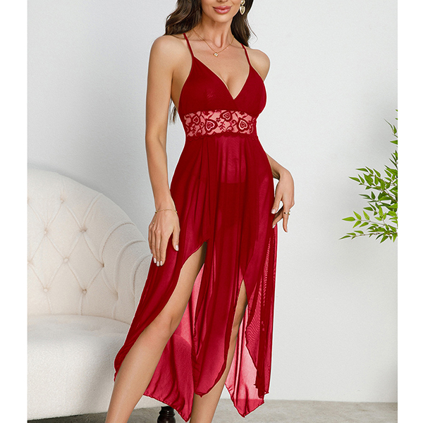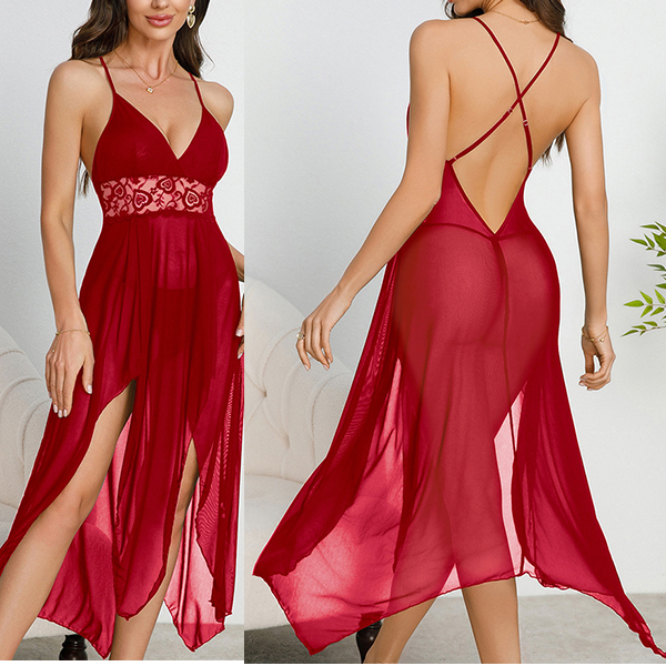 This nightwear dress features a flattering V-neckline, delicate lace splicing, and a sensual cross-criss backless design. Perfect for a romantic evening or a relaxing night in, this nightwear dress combines sophistication and comfort.