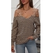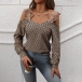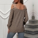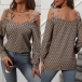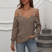 Fashion V-neck Lace Spliced Open-shoulder Long Sleeve Printed Shirt