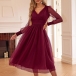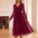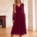 This trendy midi dress features a V-neckline, lantern sleeves, a high-rise waist, and a stylish and elegant look. I like the color-wine red design, and you?