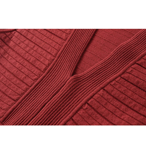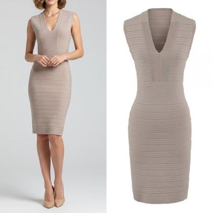 This bodycon dress features elegant V-neck styling with body-contouring bodycon construction and complete long sleeve coverage for contemporary sleek elegance.