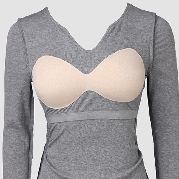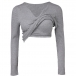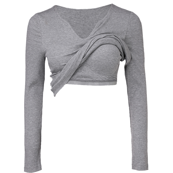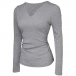 Fashion V-Neck Long Sleeve Built-in Bra Ribbed Shirt