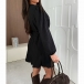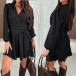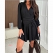 This black dress features flattering V-neck styling with waist-defining cinch detail and trendy mini length for contemporary feminine elegance. Wanna have a try?