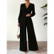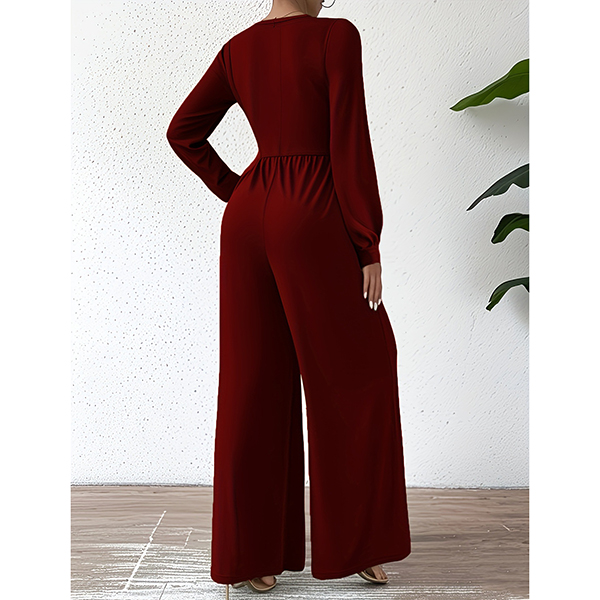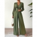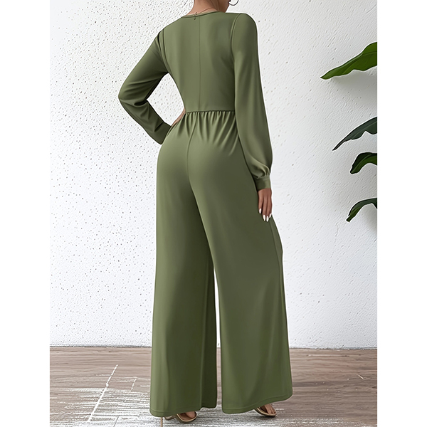 Fashion V-neck Long Sleeve Criss-cross High Waist Wide-leg Jumpsuit