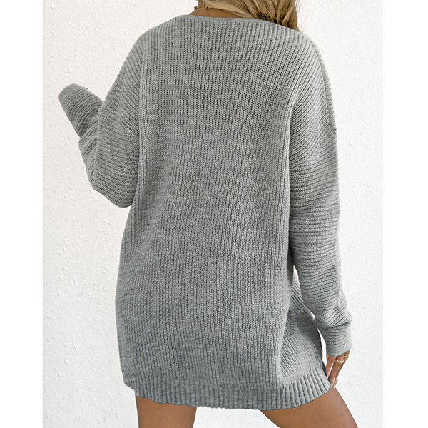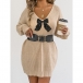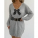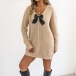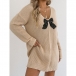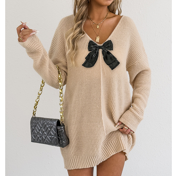 This feminine dress combines classic knitwear comfort with charming details. The V-neckline creates flattering coverage while adding elegant appeal. The front bowknot detail provides sweet feminine touch and visual focal point. Color:Apricot, Gray ~Which one do you like?