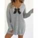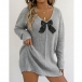 Fashion V-neck Long Sleeve Front Bowknot Knitted Sweater Dress