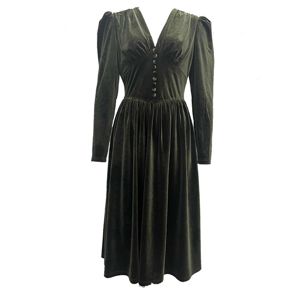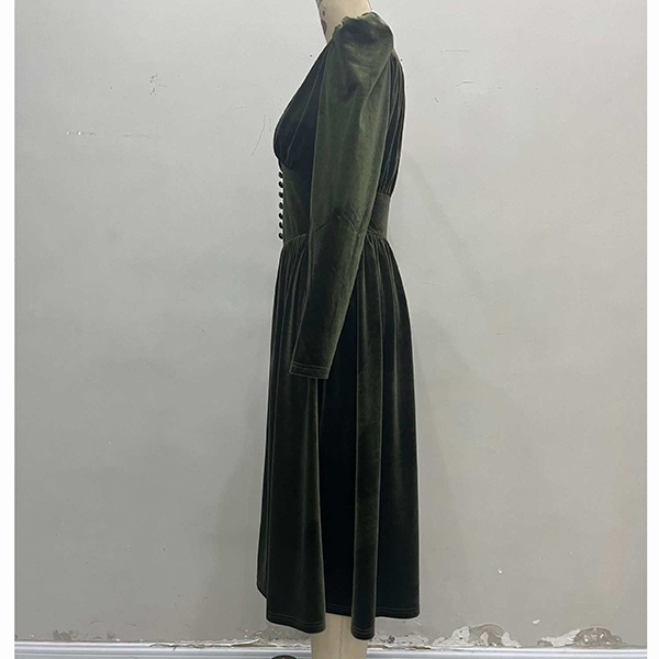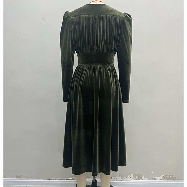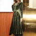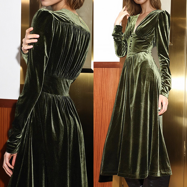 This green dress features flattering V-neck styling with classic front button decoration and elegant high-rise design for contemporary luxurious elegance. And the velvet fabric offers luxurious tactile richness and sophisticated elegance. Wanna have a try?