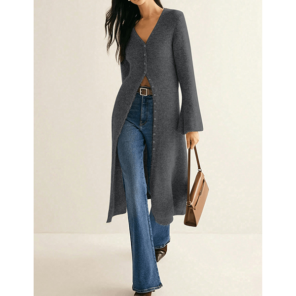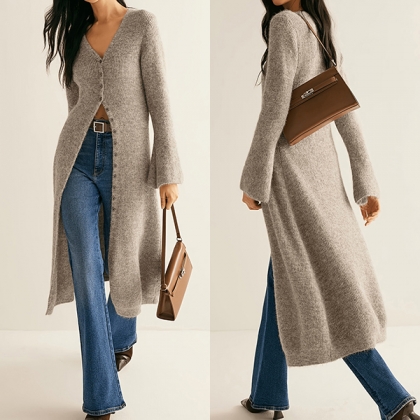 Fashion V-neck Long Sleeve Front Button Knitted Cardigan