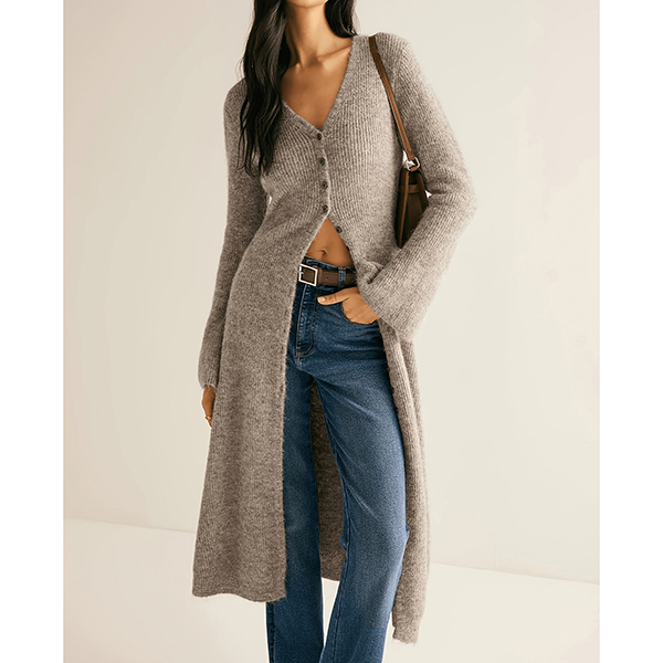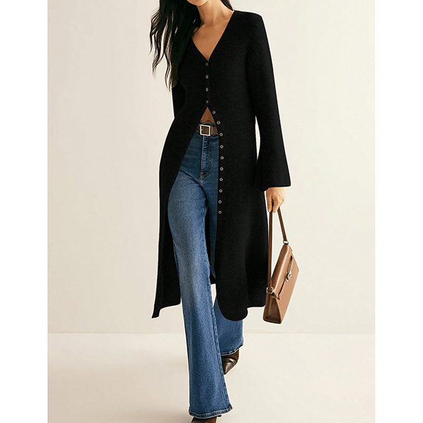 This cardigan features flattering V-neck styling with classic front button closure and comfortable knitted construction for contemporary versatile elegance. The knitted fabric provides comfortable stretch and soft wearability, wanna have a try?