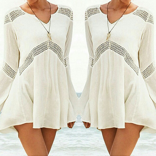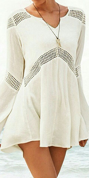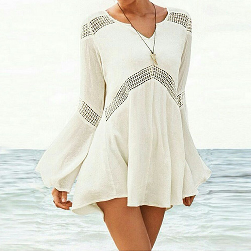 Enjoy the stylish and comfortable feeling in this dress. It features v-neck and long sleeve design.