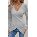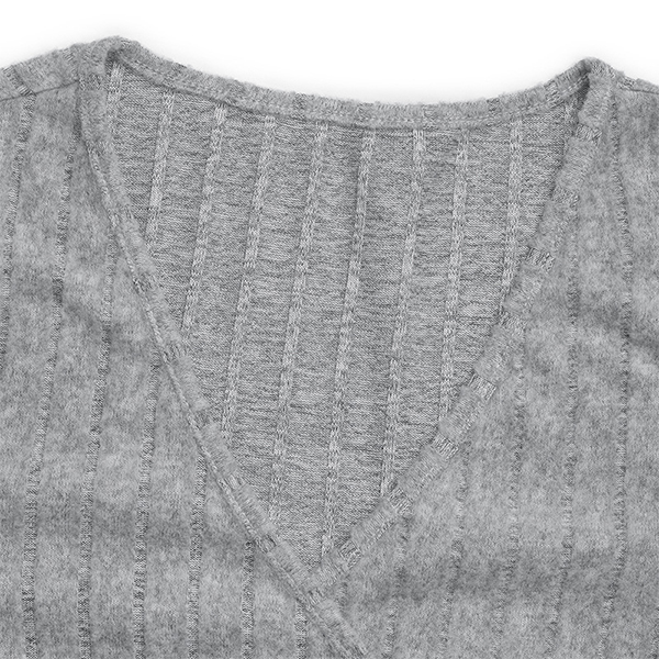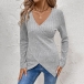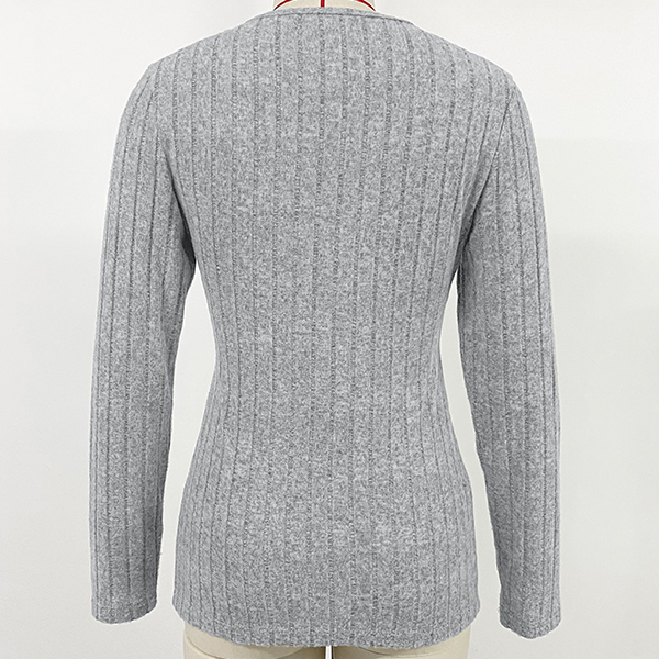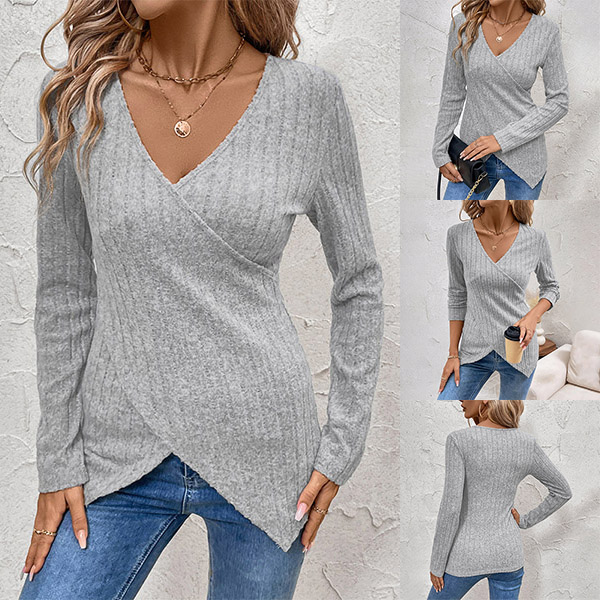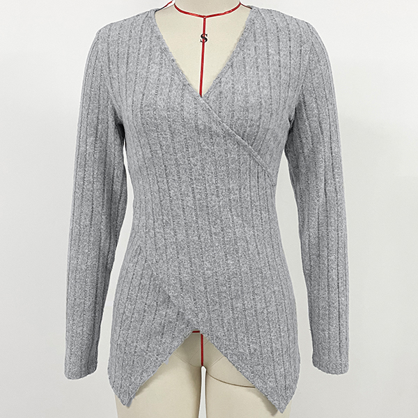 Fashion V-neck Long Sleeve Irregular Hemline Ribbed Shirt