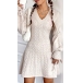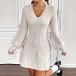 Fashion V-neck Long Sleeve Knitted Cable Pattern Sweater Dress