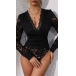 Fashion V-neck Long Sleeve Lace Bodysuit