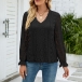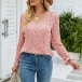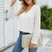 Crafted with delicate lace, this shirt exudes elegance and allure. The V-neckline flatters your collarbone and adds a hint of sensuality to the design. The long sleeves provide coverage and a sleek look. Wear it with jeans for a more casual yet chic ensemble.