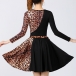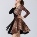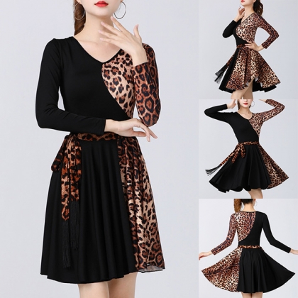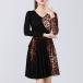 Fashion V-neck Long Sleeve Leopard Printed Contrast Color Dress
