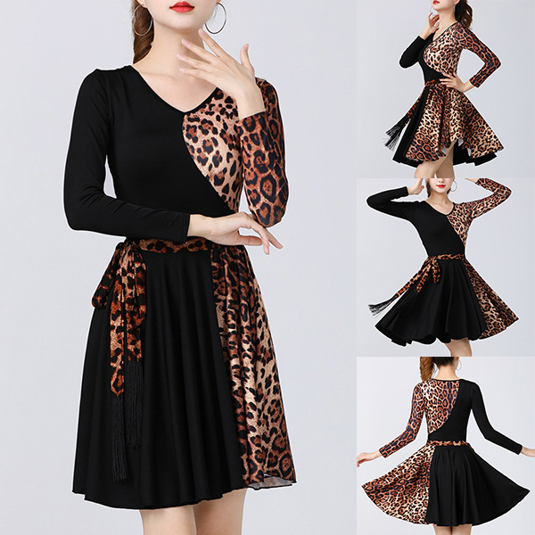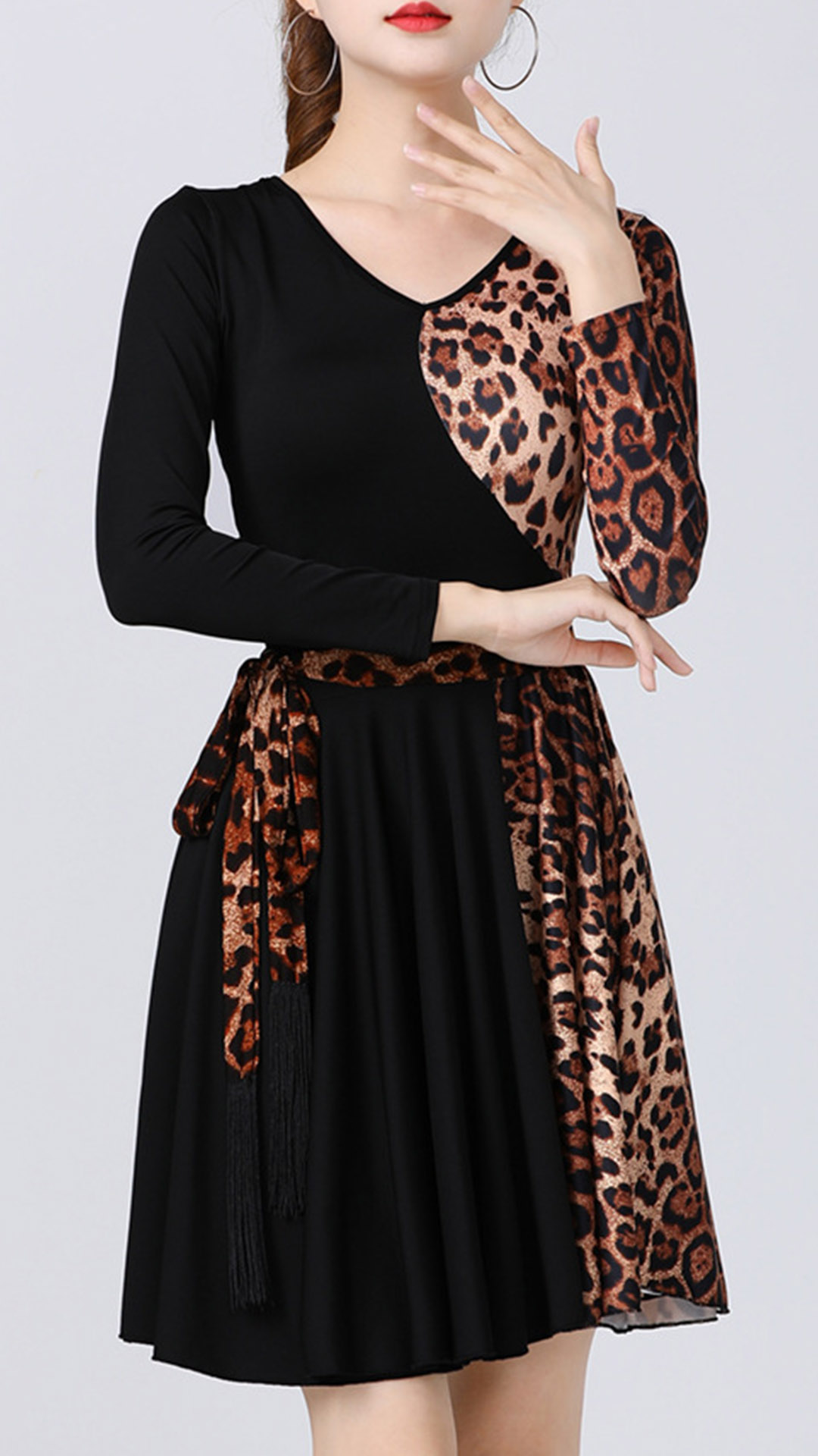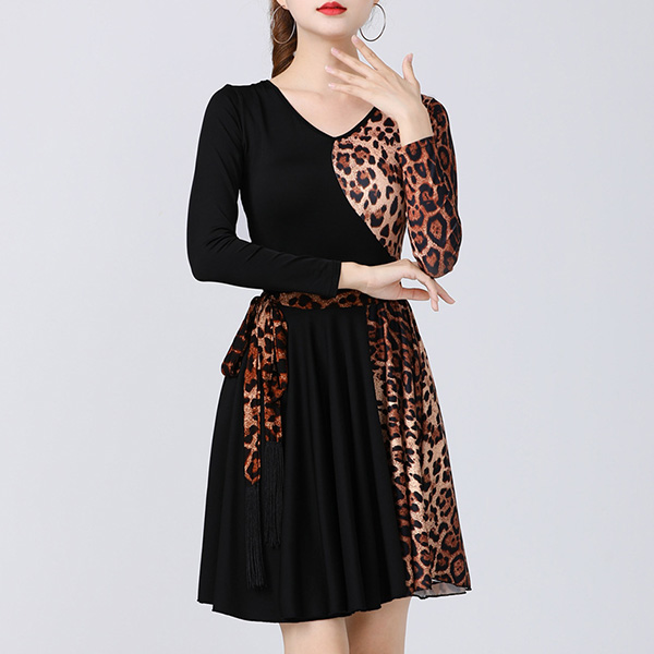 Make a bold fashion statement in this striking leopard print midi dress. Featuring a stylish colorblock design-leopard printed and black color accent, this dress is perfect for taking your casual wardrobe to the next level. The soft, lightweight fabric drapes beautifully, creating a figure-skimming silhouette that moves gracefully with every step. It is perfect for daily wear also for dancing dress!