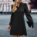 Featuring long sleeves, this dress exudes a chic and trendy vibe. The mini length adds a playful and youthful touch, creating a balanced and versatile look.