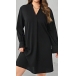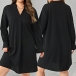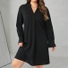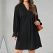 This black plus-size dress is a stylish and flattering option for a variety of occasions. The V-neckline adds a touch of femininity and elegance to the dress, while the long sleeves provide coverage and warmth. Crafted from high-quality fabric, this dress drapes beautifully on the body and offers a comfortable and stylish fit.