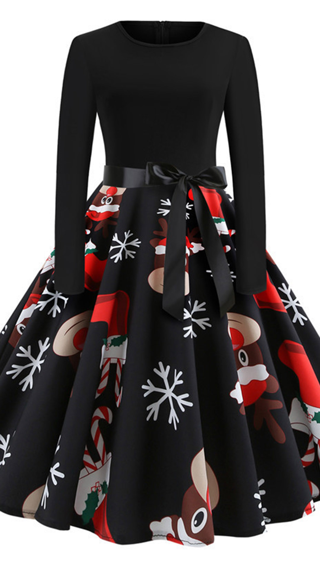 sleeve and round neck design,this dress can give you a wonderful Christmas time!