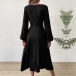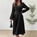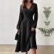 Fashion V-neck Long Sleeve Ruched High-rise Midi Dress