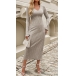 This fashionable ribbed dress features a V-neck, long sleeves, self-tie waist, and ribbed detailing, creating a chic and stylish look.