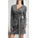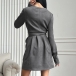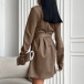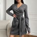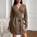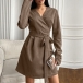 Fashion V-neck Long Sleeve Self-tie Wrap Suede Dress