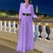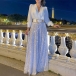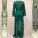 Fashion V-neck Long Sleeve Sequined Spliced Wide-leg Jumpsuit with Belt