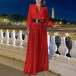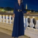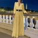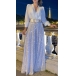 This striking jumpsuit features a V-neckline, long sleeves, sequined detailing along the pant, and wide-leg trousers, and a coordinating belt, creating a glamorous and fashion-forward silhouette. Perfect for party wear.