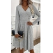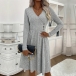 Fashion V-neck Long Sleeve Side Button Ribbed Dress