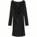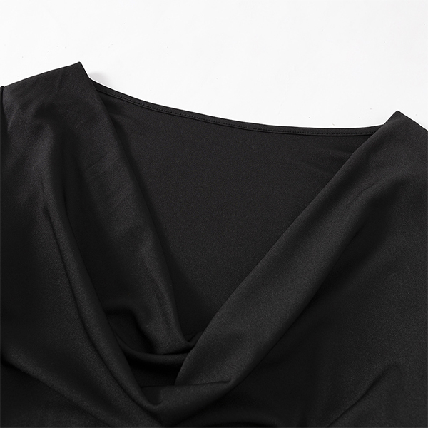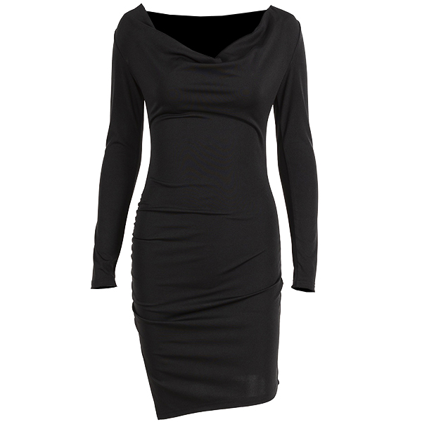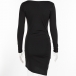 Fashion V-neck Long Sleeve Side Slit Black Dress