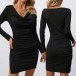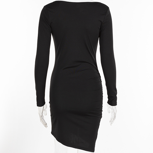 This bodycon dress features a V-neckline, long sleeves, and side slits, creating a chic and stylish look.Wanna have a try?