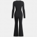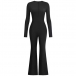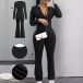 This black jumpsuit features a V-neckline, long sleeves, and a slim-fit ribbed design, creating a chic and stylish look. Wanna have a try?