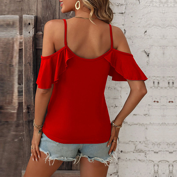 Fashion V-neck Open-shoulder Short Sleeve Shirt