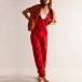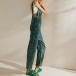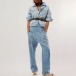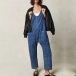 This denim jumpsuit is a trendy and versatile piece that combines retro style with modern design elements. It features V-neckline, patch pockets and straight-cut silhouette, which offers a relaxed and comfortable fit, making it perfect for everyday wear.