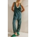 Fashion V-neck Patch Pockets Straight-cut Old-washed Denim Jumpsuit